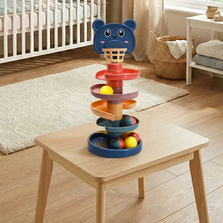 The Baby Ball Drop Tower is a hit! It’s sturdy enough for my 10-month-old, and the colors are exactly as pictured.